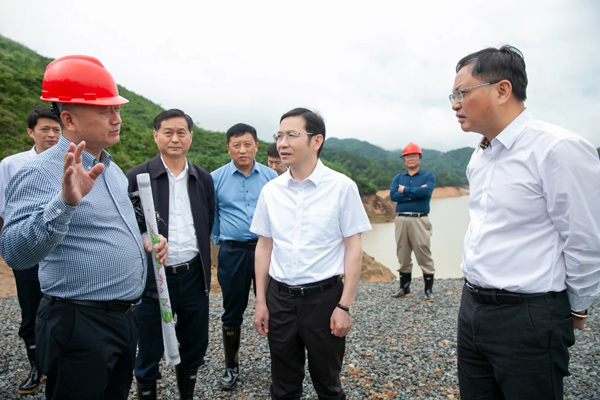 2021年5月21日上午,鷹潭市委書記黃喜忠深入由我集團承建的貴溪市塘灣水庫除險加固工程進行實地調研,指導在建工程防汛備汛。塘灣水庫壩址以上控制流域面積22.6平方公里,總庫容1321萬立方米,灌溉面積1.43萬畝,電站裝機容量320千瓦。塘灣水庫除險加固工程于2020年11月開工建設,目前在各參建單位共同努力下,按計劃穩(wěn)步推進,主體工程有望在合同工期內完工。黃喜忠登上水庫大壩,實地查看了項目建設進展情況,并對水庫加固工程建設工作提出明確要求。他指出,要在確保質量和安全的前提下,加快推進項目建設,確保早日建成見效。黃書記強調,各參見單位在工作中要堅持人民至上、生命至上,切實把確保人民生命安全放在第一位落實。
