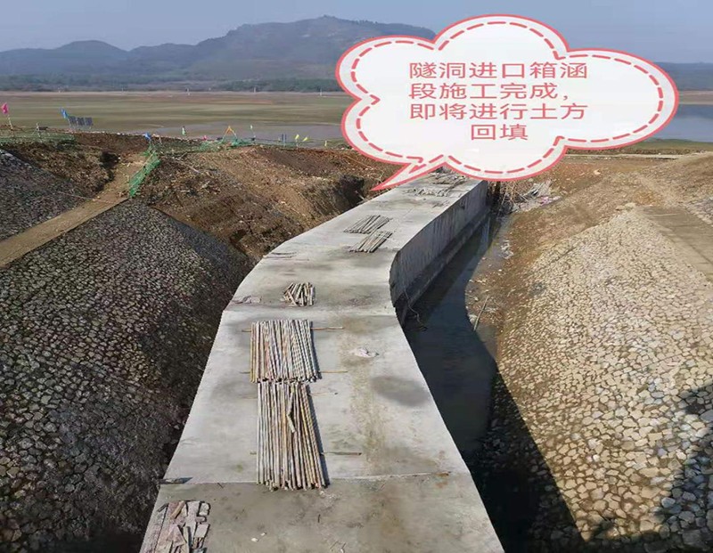 工程于2021年10月26日正式開工,目前已完成主要形象進度有:大壩壩坡修整、大壩左岸粘土鋪蓋和粘土斜墻、壩下涵管內襯鋼管、隧洞進口箱涵段和泄洪渠1+200~1+975 m,其它項目均按照計劃工期有序推進,圓滿完成2021年度施工任務,為完成2022年安全度汛打下堅實的基礎。