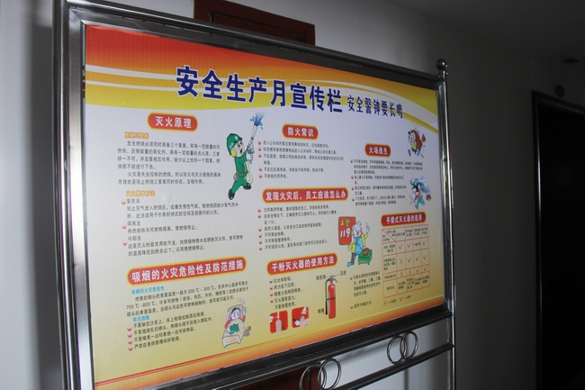 公司總部在辦公樓懸掛“關注安全,平安是?!?、“強化安全基礎,推動安全發展”橫幅,并在辦公樓內每層擺放2個安全宣傳牌。