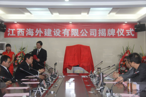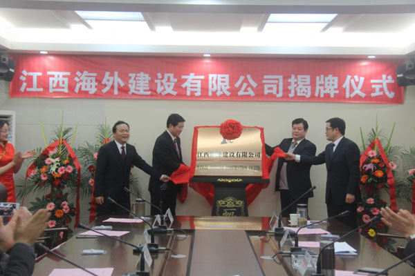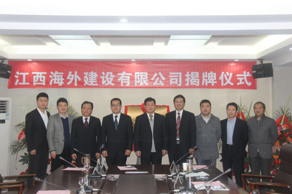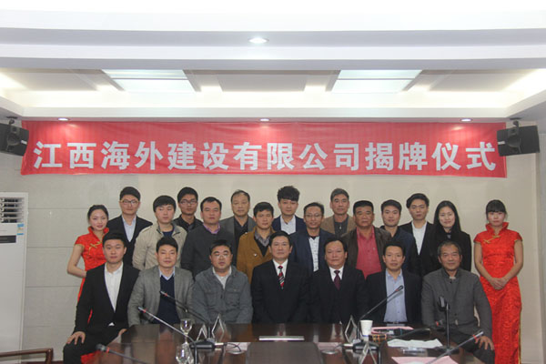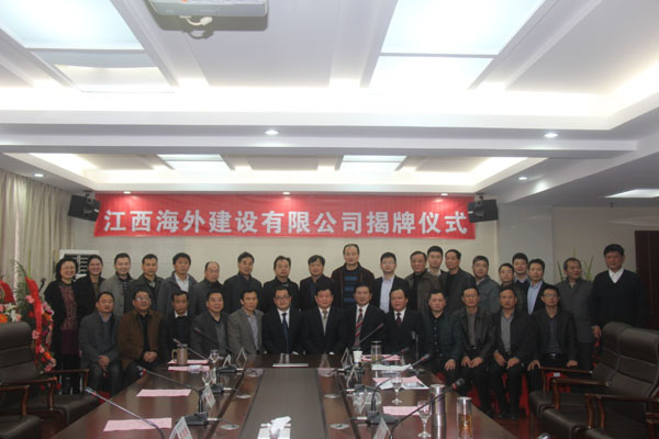 隨后,伴隨著歡樂喜慶的歌曲,總公司董事長王元旦,總經理徐洪良與江西海外建設有限公司執行董事張周平,總經理黃鄭民為新公司揭牌并合影留念。