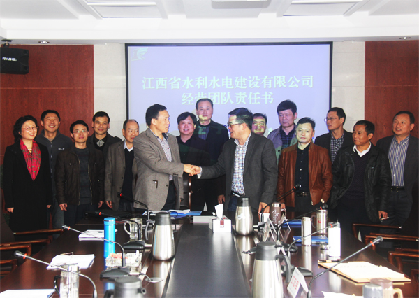 2015年4月11日,江西省水利水電建設(shè)有限公司2015年度國內(nèi)經(jīng)營團(tuán)隊(duì)業(yè)績責(zé)任書簽字儀式在公司總部星河國際22樓會(huì)議室舉行。公司總經(jīng)理徐洪良分別與公司經(jīng)營層高管、部門負(fù)責(zé)人簽訂了2015年度國內(nèi)經(jīng)營團(tuán)隊(duì)業(yè)績責(zé)任書。