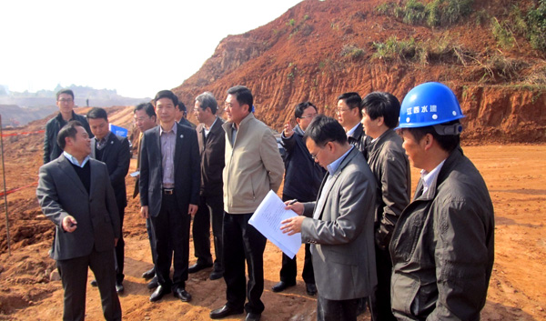 2013年11月20日,江西省萍鄉市市委書記陳衛民率市委、市經濟開發區、建設局等有關部門負責人來到我公司承建的萍鄉市城市防洪應急工程2標分洪河項目檢查指導工作。