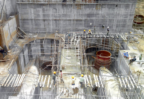 南化二級水電站水輪發電機組底座進入澆筑環節