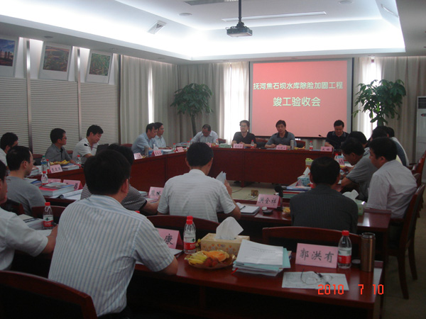 孫曉山廳長和文林副廳長參加了竣工驗收會。在竣工驗收會上,孫曉山廳長發表了重要講話,對各參建單位為撫河焦石壩水庫除險加固工程的如期完工和驗收所負出的辛勤勞動給予了充分肯定,并稱贊我公司是一支能打硬仗的好隊伍。