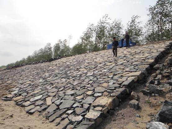 [注:九江長江江心洲固岸應(yīng)急度汛工程,包括九江縣江新洲1標(biāo)和彭澤縣棉船洲1標(biāo),由我公司中標(biāo)承建。工程主要建設(shè)內(nèi)容為拋石、砼四邊六面框架、干砌石護(hù)坡,項(xiàng)目總投資4000萬元。江新洲和棉船洲大堤共保護(hù)面積130.39 平方公里,保護(hù)耕地12.18萬畝,保護(hù)人口8.39萬人,圩區(qū)內(nèi)土地肥沃,灌溉便利,是江西省的重要棉油生產(chǎn)基地。]