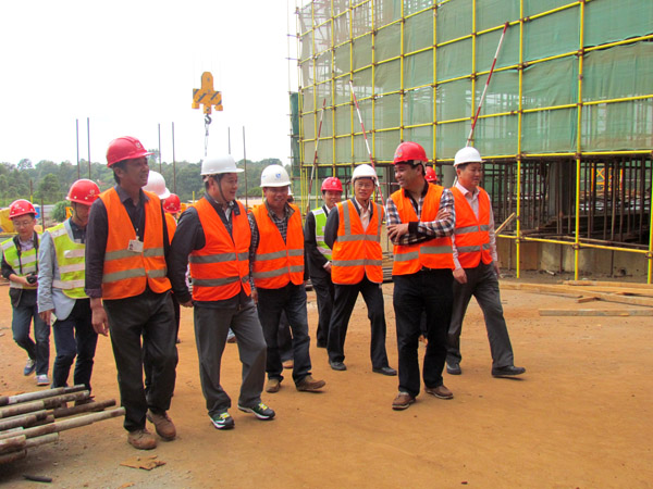 上午11時(shí),董事長王元旦一行在雙河二期管委會淦晶副主席的主持下召開了管委會擴(kuò)大會議,項(xiàng)目經(jīng)理彭紅軍做了項(xiàng)目施工管理工作報(bào)告,詳細(xì)匯報(bào)近期施工管理及進(jìn)展情況。結(jié)合項(xiàng)目的現(xiàn)場檢查情況,王元旦董事長首先對項(xiàng)目的工程安全和質(zhì)量表示了肯定。他指出,應(yīng)進(jìn)一步加強(qiáng)和完善過程控制,把安全和質(zhì)量管理要落實(shí)到位。董事長特別強(qiáng)調(diào),項(xiàng)目現(xiàn)已進(jìn)入高空作業(yè)階段,要加大管理力度,排除施工過程中存在的安全隱患,提高員工的安全意識,從源頭降低安全風(fēng)險(xiǎn)。