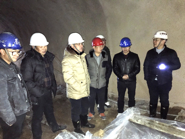 期間,徐洪良總經(jīng)理一行與業(yè)主、設計、試驗檢測、監(jiān)理等單位的領導頂著鵝毛大雪,參加了37標1#隧洞貫通儀式。