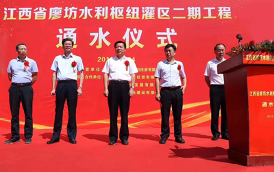 9月24日上午,廖坊水利樞紐灌區(qū)二期工程通水儀式在該工程西干渠渠首舉行。撫州市委副書記、市長張鴻星宣布開閘通水;市委副書記王宏安致辭;省水利廳副廳長王純、省發(fā)改委副巡視員王威出席;副市長徐國義主持。公司黨委書記、董事長王元旦,公司常務副總經理王俊華,總經理助理彭燦華出席儀式。