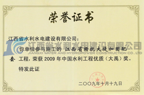 金杯銀杯不如老百姓的口碑。十年來,公司始終以項目管理為核心,以過程控制為主線,以質(zhì)量安全為重點,以品牌形象為抓手,努力鑄造精品工程,滿足社會需要,實現(xiàn)社會價值。十年來,公司共有 12項QC成果,獲省部級獎項;有 7項工法獲得省部級工法,2項科研項目研究獲贛鄱水利科技一等獎;填補了歷史空白,有力的提升了企業(yè)的核心競爭力。十年來,公司承建的贛撫大堤加固配套工程和長江大堤防洪工程榮獲“大禹獎”,數(shù)十個項目榮獲全省水利優(yōu)良工程獎,5個項目被水利部評為文明工地,榮獲水利部首一批安全生產(chǎn)標準化施工企業(yè)和信用等級AAA企業(yè)。