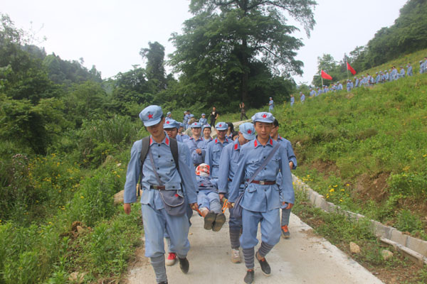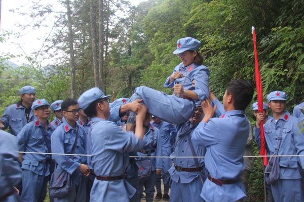 抵達井岡山后,全體人員立刻進入三灣隊伍整編環節,推薦隊長、政委和旗手,設計隊名、口號和LOGO。很快“飛龍隊”、“戰鷹隊” 等名字紛紛閃亮登場?!褒堈魅f里,所向披靡”、“ 群狼行千里,星火可燎原”等口號一次又一次迎來全場的陣陣歡呼。隨后進行了“穿越叢林、突破封鎖線、匍匐前進、火線救援”4個比賽項目,這些比賽項目,增強了大家的團隊意識,每名成員充分認識到了團結協作、友愛互助的重要性,使大家在比賽中受到啟發、受到鼓舞、更使大家得到了鍛煉,經受了考驗。