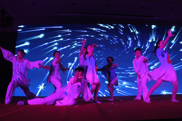 鮮紅的綢帶,迎來明媚的新春;火紅的笑臉,洋溢著節日的喜慶。隨后的文藝匯演在大合唱《新時代的水建人》中拉開帷幕,舞蹈,歌曲聯唱,雙簧,魔術等文藝節目先后上場,整場演出精彩絕倫,高潮迭起,掌聲和歡笑聲貫穿全場,現場成了一片歡樂的海洋。最后,公司高管登臺和大家一起同唱《團結就是力量》,一首《團結就是力量》把年會推向了高潮。團結是我們的力量之源,團結是企業騰飛的支點。同心山成玉,協力土變金。我們同是一顆心,同是一條根,同是水建人,讓我們團結起來,肩并著肩,手牽著手,用比鐵還硬、比鋼還強的磅礴力量,共同譜寫公司改革創新加快發展的嶄新篇章。