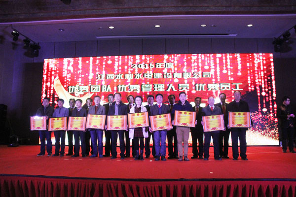 隨后,公司董事長王元旦、總經理徐洪良和相關領導向海外公司等10個優秀團隊、郭洪有等22位優秀管理者和周家煌等30位優秀員工進行頒獎,感謝他們在過去的2015年為江西水建發展所作出的貢獻。