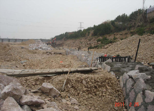 堤基清理:必須對(duì)堤內(nèi)、外坡腳線外1m范圍內(nèi)的亂石、墳?zāi)埂⒏鞣N建筑物和垃圾、雜草、樹木、樹根、腐植土及淤泥全部清除,并棄至背水坡腳以外或指定場地,水井、泉眼、洞穴等按設(shè)計(jì)要求處理,并經(jīng)驗(yàn)收確認(rèn)合格為止。