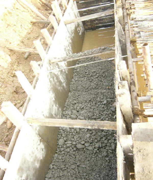 基坑開挖:驗(yàn)收前,施工單位應(yīng)對(duì)地下水或地表水作妥善引排或封堵,清理積渣雜物,作好高程、軸線的測量復(fù)核、記錄,并設(shè)樁拉線。驗(yàn)收合格后,方可安排砌石或澆筑混凝土。