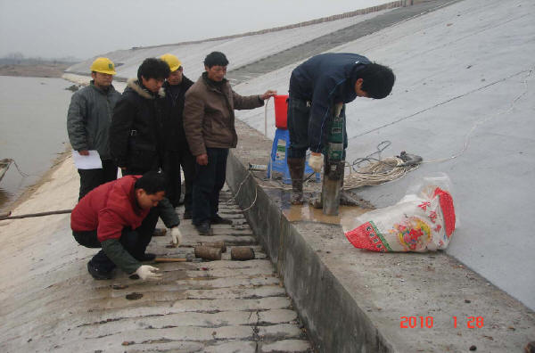 ※ 重點(diǎn)檢查水庫的險(xiǎn)情是否已按設(shè)計(jì)要求給予消除;工程質(zhì)量是否按規(guī)定檢驗(yàn),各項(xiàng)檢測數(shù)據(jù)是否滿足設(shè)計(jì)要求或相關(guān)標(biāo)準(zhǔn):土方的壓實(shí)度、滲透系數(shù);混凝土(含預(yù)制塊)的抗壓強(qiáng)度、抗凍、抗?jié)B、彈性模量;砂漿的抗壓強(qiáng)度;灌漿的壓水試驗(yàn)結(jié)果(透水率Lu):固結(jié)灌漿≮5%、帷幕灌漿≮10%。