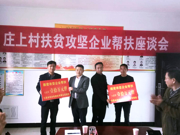 為認(rèn)真貫徹落實(shí)黨的十九大關(guān)于堅(jiān)決打贏脫貧攻堅(jiān)戰(zhàn)的新部署新要求,踐行企業(yè)的社會(huì)責(zé)任。11月17日,公司副總經(jīng)理王俊華同志率撫州廖坊灌區(qū)二期工程施工總部負(fù)責(zé)人胡福民、項(xiàng)目財(cái)務(wù)部負(fù)責(zé)人肖志兵代表江西省水利水電建設(shè)有限公司前往南城縣洪門鎮(zhèn)參加莊上村扶貧攻堅(jiān)企業(yè)幫扶座談會(huì),并將公司捐助的10萬元扶貧資金送至莊上村村委會(huì)。